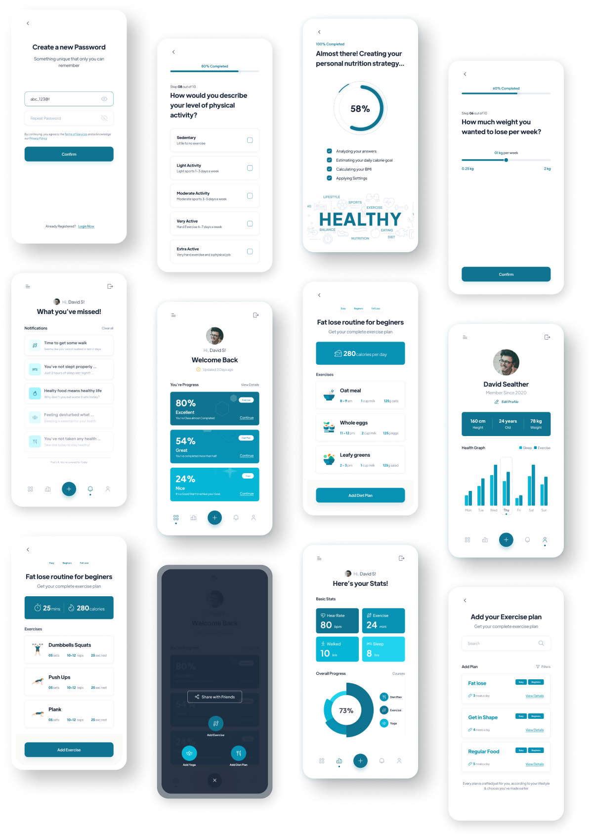 The choice of color for this app was cyan blue. It is believed to have a calming effect and helps you manage stress. This color also provides motivation and comfort hence it can give users the right amount of motivation to get going as dark-colored apps can easily intimidate a user.